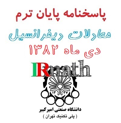 جواب سوالات آزمون معادلات دیفرانسیل دانشگاه صنعتی امیرکبیر (پلی تکنیک) تهران که در دیماه 1382 برگزار شده، برای شما عزیزان آماده شده است که تقدیم می گردد. امیدواریم با مطالعه این پاسخ ها، بتوانید برای حل سایر مسائل معادلات دیفرانسیل، راهنمایی ها و تجربیات لازم را به دست آورید. همچنین کاربران عزیز می توانند از لینک های زیر، این نمونه سوال و سایر نمونه سوالات را در سایت ریاضیات ایران، به صورت آنلاین مطالعه کنند.