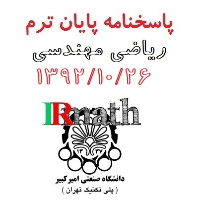 جواب سوالات آزمون پایان ترم ریاضی مهندسی دانشگاه صنعتی امیرکبیر (پلی تکنیک) تهران که در تاریخ 1321026 برگزار گردیده، برای شما عزیزان آماده شده است که تقدیم می گردد. امیدواریم با مطالعه این پاسخ ها، بتوانید برای حل سایر مسائل ریاضی مهندسی، راهنمایی ها و تجربیات لازم را به دست آورید. همچنین کاربران عزیز می توانند از لینک های زیر، این نمونه سوال و سایر نمونه سوالات را در سایت ریاضیات ایران، به صورت آنلاین مطالعه کنند.
